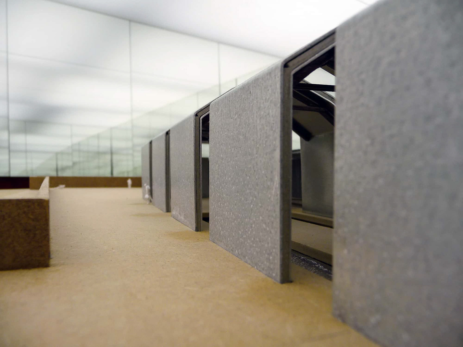 The water treatment room, which was the water source for the entire complex, has been used as a source for a liquid model as well. Paraffin is poured into a physical scale model of the existing building in order to create an outline for the ‘natural’ behavior of liquids within the architectural constrains of the factory. This outline formed the basis during the whole design process.